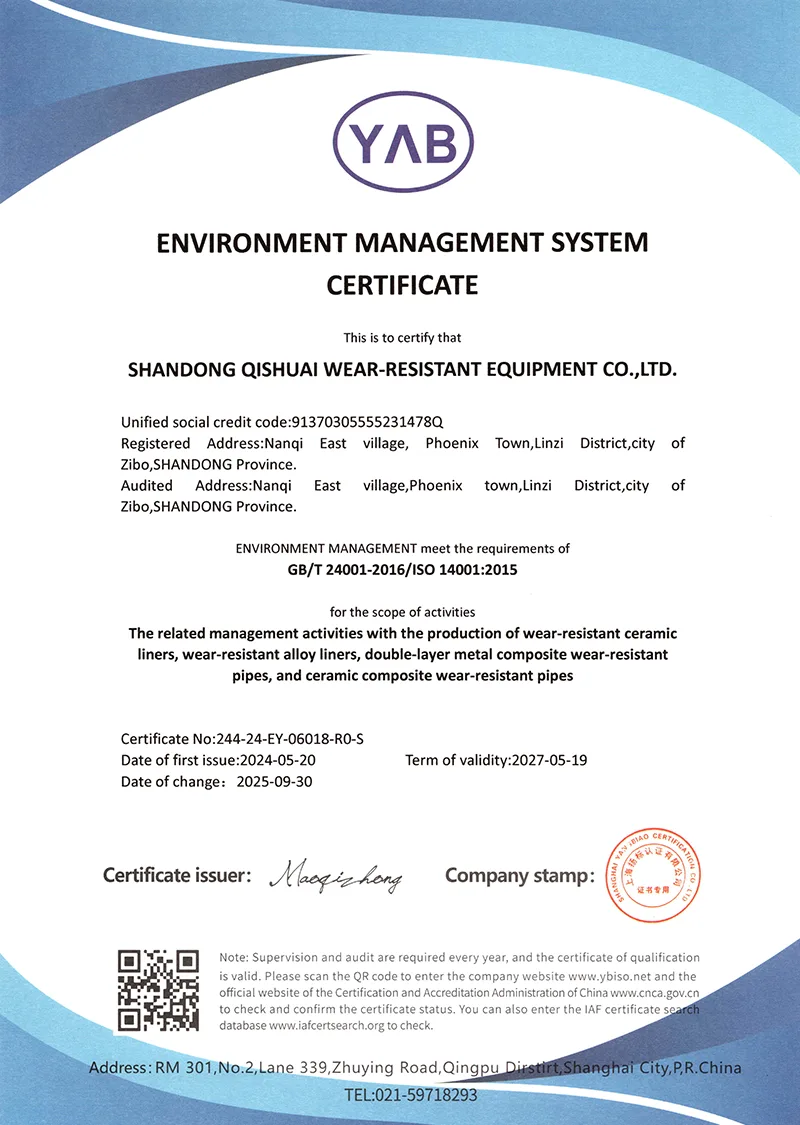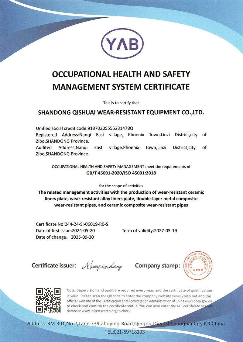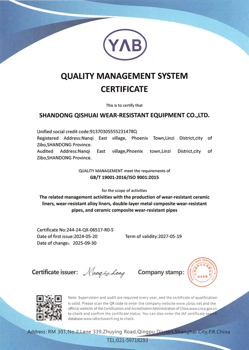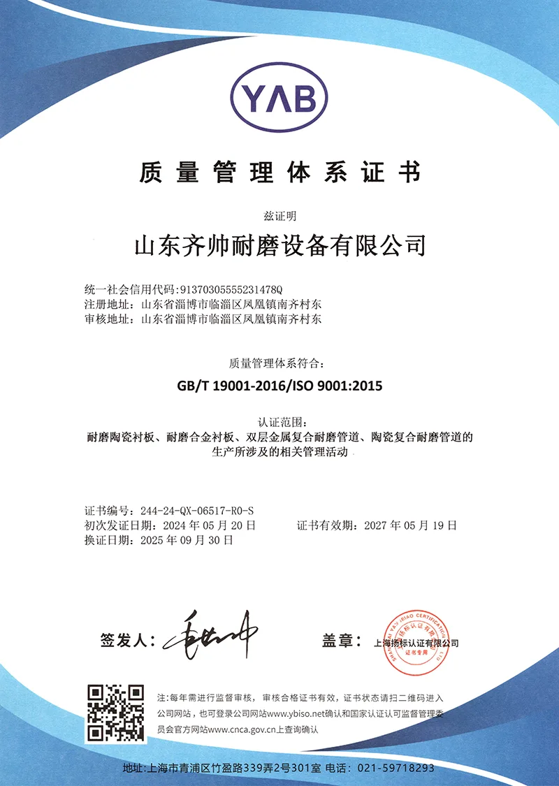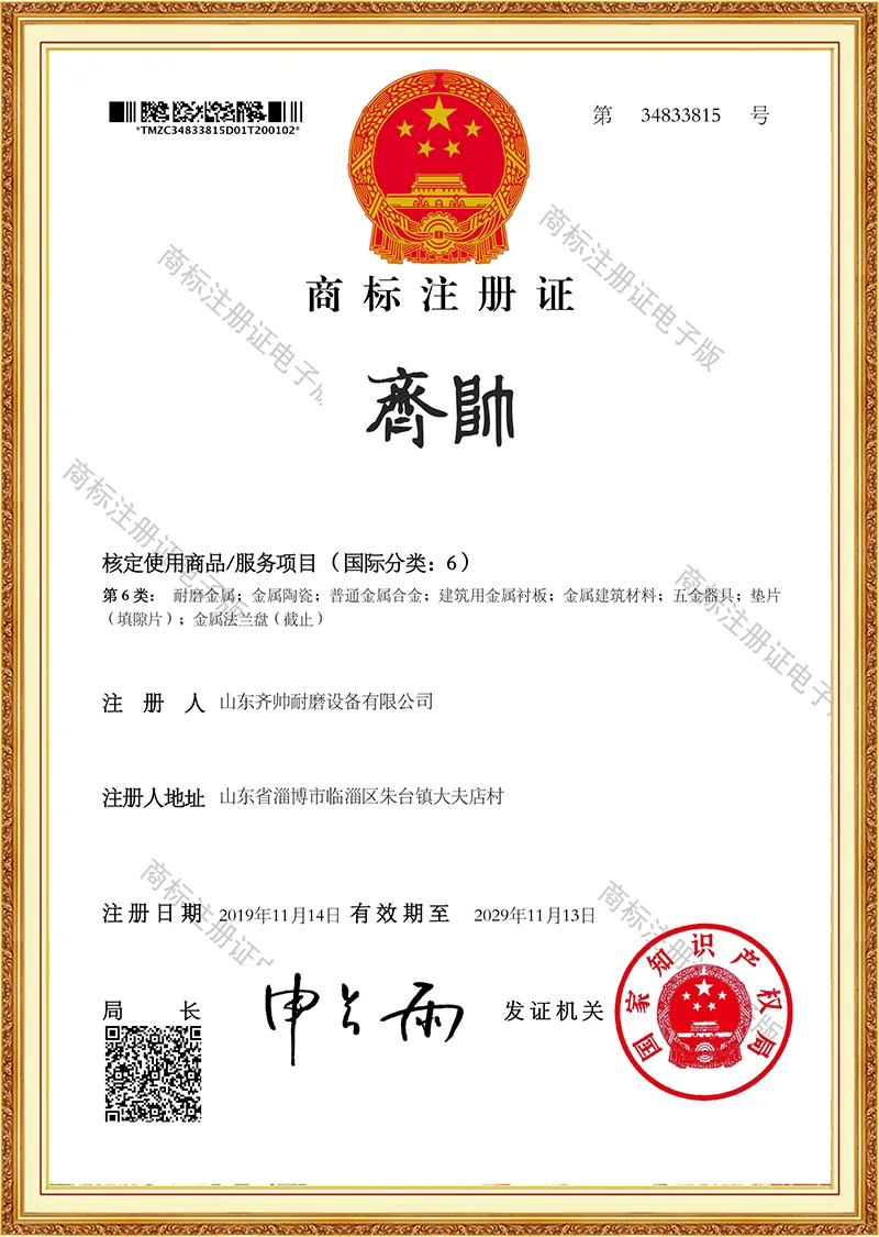 บริษัทได้รับการรับรองมาตรฐาน ISO9001 และได้รับสิทธิบัตรรุ่นอรรถประโยชน์มากมาย ซึ่งได้รับการยอมรับในด้านความแข็งแกร่งทางเทคโนโลยี เราเป็นเจ้าของโรงงานของเราเองและมีส่วนร่วมอย่างลึกซึ้งในอุตสาหกรรมผลิตภัณฑ์ที่ทนต่อการสึกหรอมานานกว่าทศวรรษ
